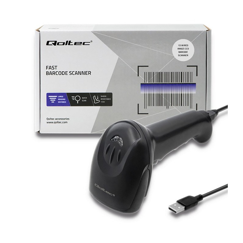 Qoltec 50866 Laser barcode reader 1D | CCD | USB | Black