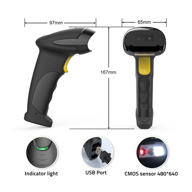 1D and 2D barcode scanning capability with USB interface for quick connection.