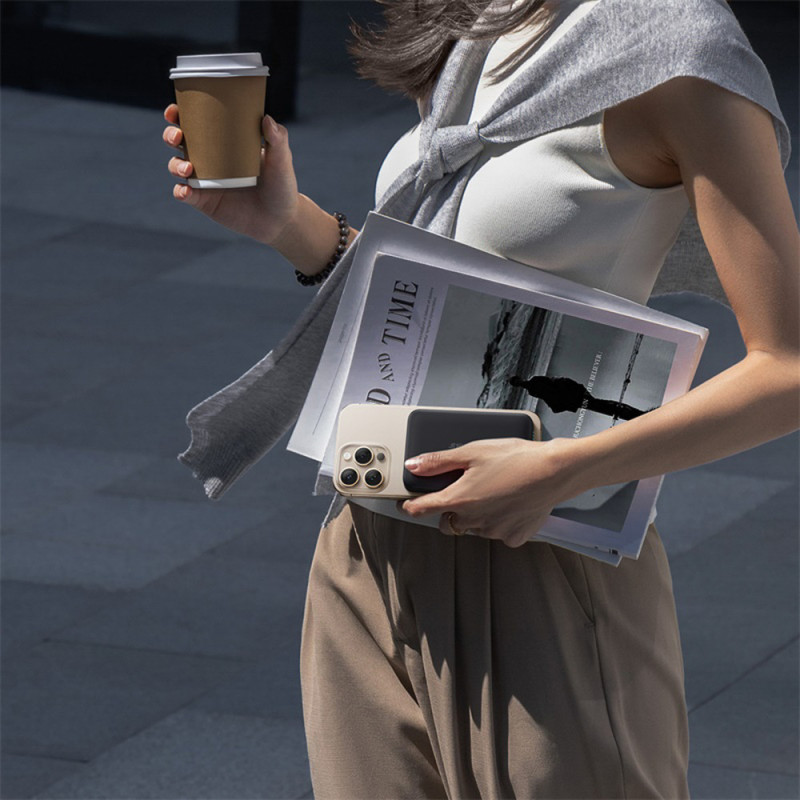 N52 magnets ensure stable adhesion of the phone to the power bank and convenient charging without the need for cables.
