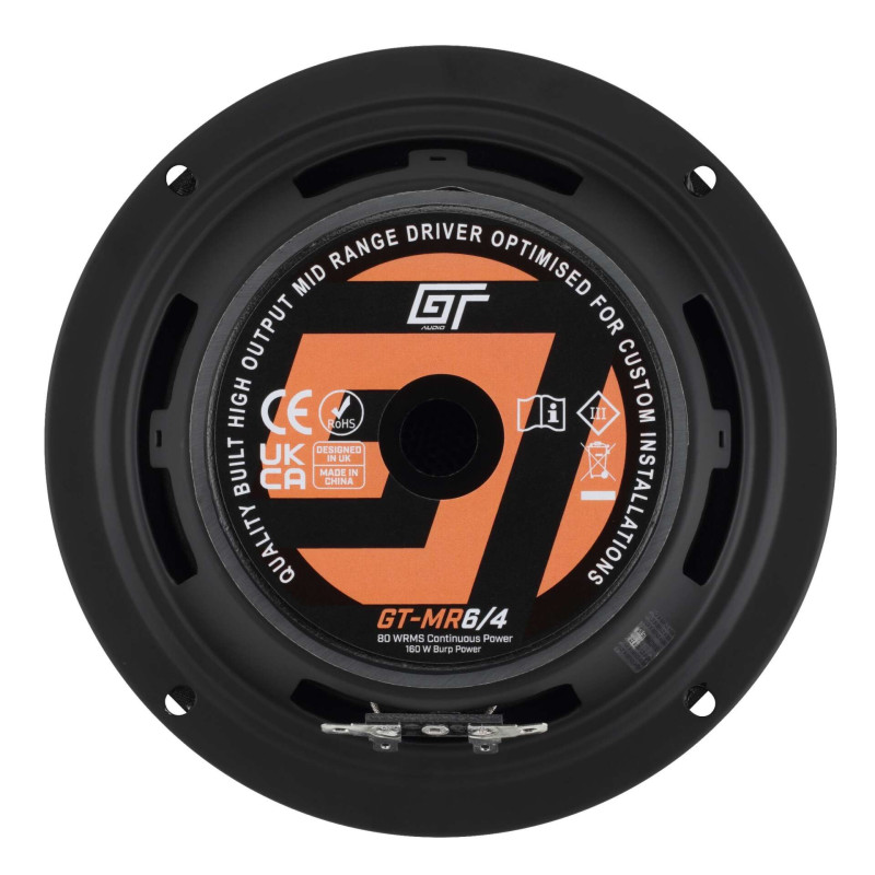 Bassface GT-MR6/4 it's solid single-coil midrange speaker designed for precise and dynamic playback mid-frequency range in car audio systems. Thanks efficient magnetic system offers stable work at continuous power 80 W RMS, maintaining high efficiency and sound control.