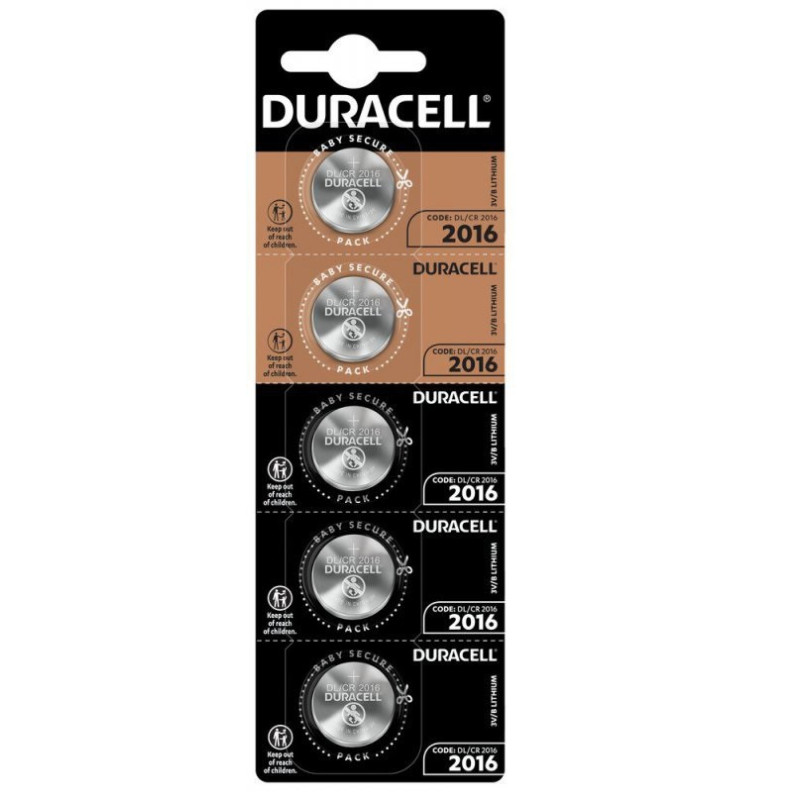 Duracell CR2016 HSDC lithium batteries provide 3V of power and are designed for use in compact devices such as car remote controls, watches and medical equipment. The pack contains 5 batteries with a long shelf life of up to 10 years.