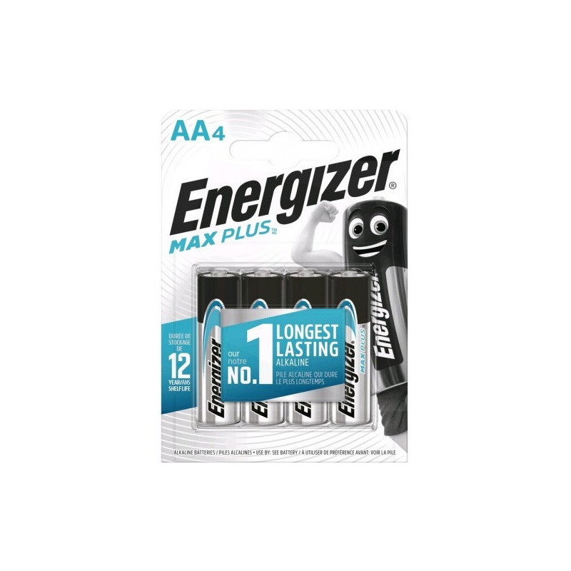 Energizer LR6 AA Max Plus batteries provide 1.5V power and are designed for low-power devices. They are suitable for wireless remote controls, computer mice and motorized toys.