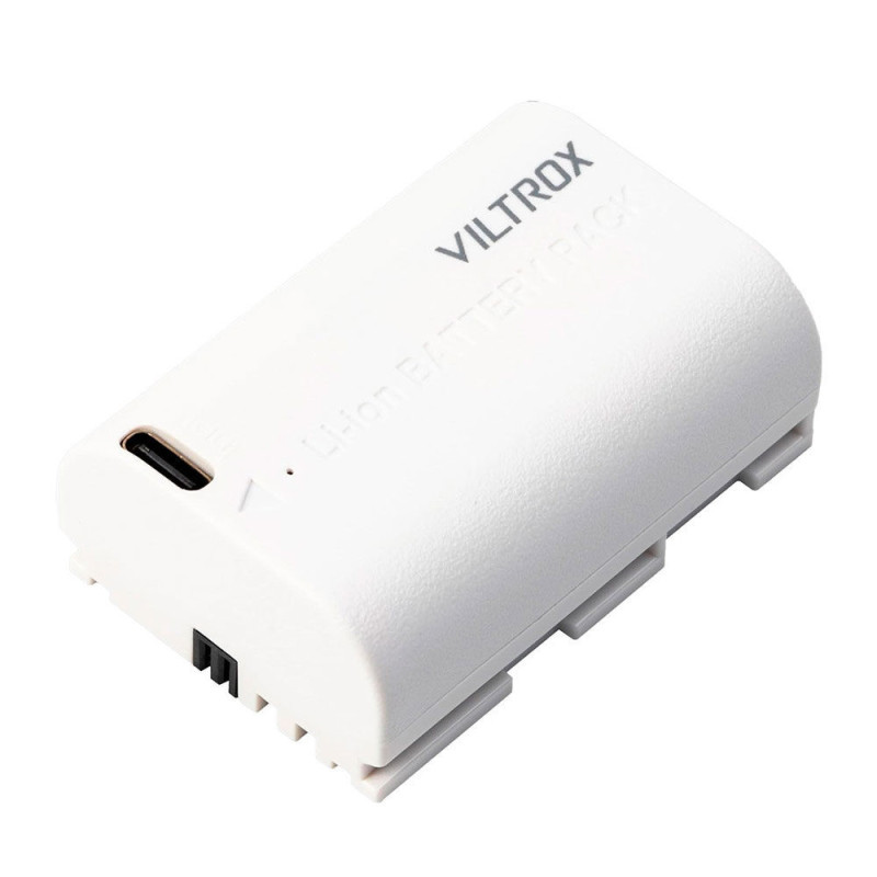 The Viltrox LP E6 battery is a rechargeable lithium-ion battery compatible with Canon cameras. It features a USB-C connector for direct charging and a 2400mAh capacity, allowing for approximately 2.5 hours of charging time.