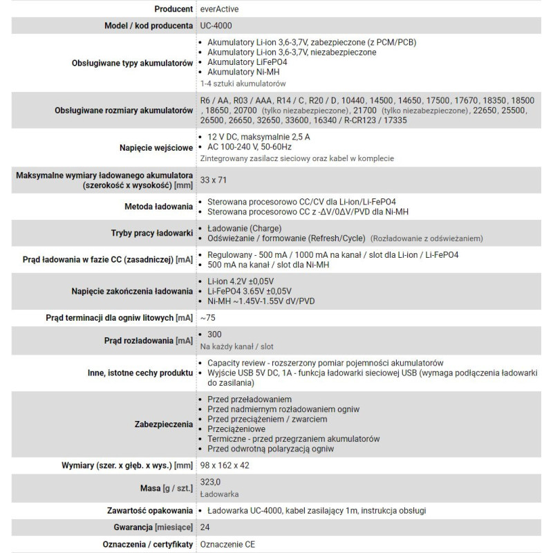 | Supported batteries | AAA/R03 1000 mAh, AA/R6 2000 mAh |