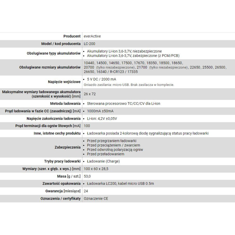 Charger for Cylindrical li-ion Batteries everActive LC-200