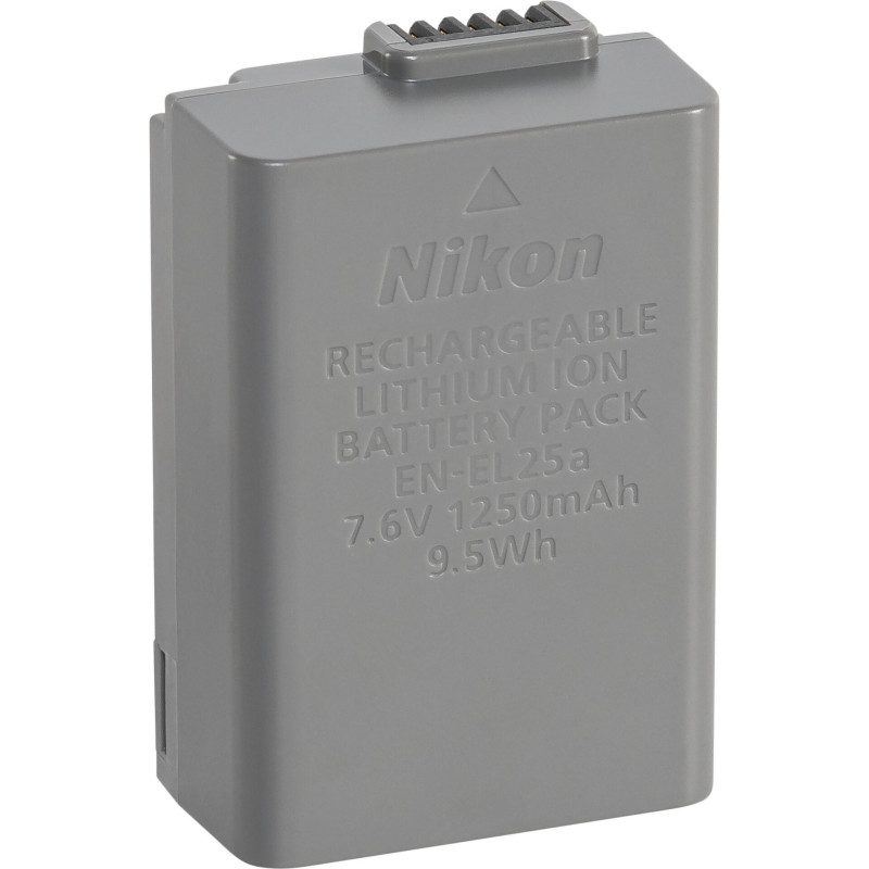 The Nikon EN-EL25a is a high-quality rechargeable lithium-ion battery for Nikon Z series system cameras, such as the Z30, Z50 and Z fc. It features a higher capacity for longer shooting and video recording times. Compact and lightweight, the EN-EL25a is ideal for travel and everyday use, and also supports in-camera charging when used with compatible camera models.