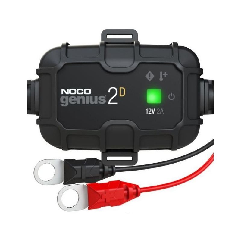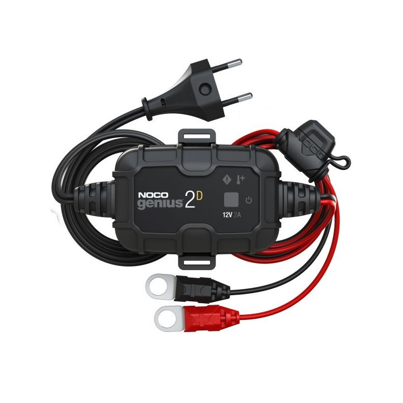 The GENIUS2DEU 2A direct mount battery charger is designed for charging and maintaining 12V lead-acid batteries, including AGM and Gel types, with a capacity of up to 40 Ah. It features automatic battery repair, advanced diagnostics and a range of power protection features to ensure safe and efficient charging.