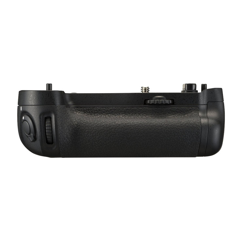 The optional MB-D16 battery pack extends battery life and provides greater control when shooting in portrait mode. It comes with an alternative shutter-release button, multi-selector, and AF-on button for use when the camera is held in a vertical position, as well as a sub-command dial and sub-command dial. It can be powered by six standard AA batteries or a dedicated Nikon Li-ion battery.