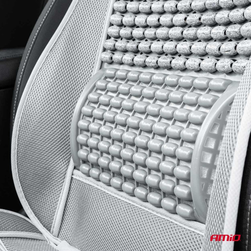 Beaded elements increase driving comfort and convenience by creating a breathable space between the seat and the driver.