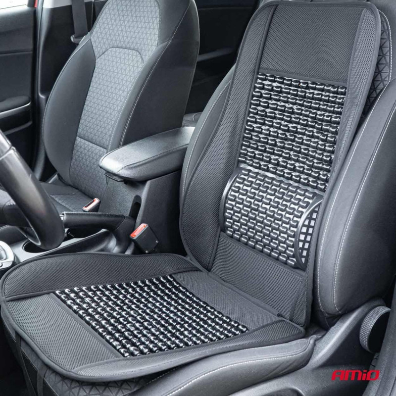 Beaded elements increase driving comfort and convenience by creating a breathable space between the seat and the driver.