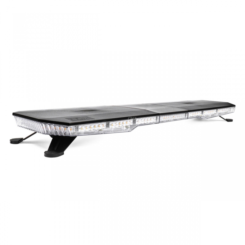 The 965mm LED warning beam has 51 functions. A remote control is included. It is certified to standards such as ECE R65 and ECE R10 SAE.