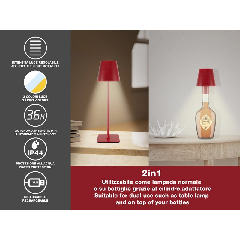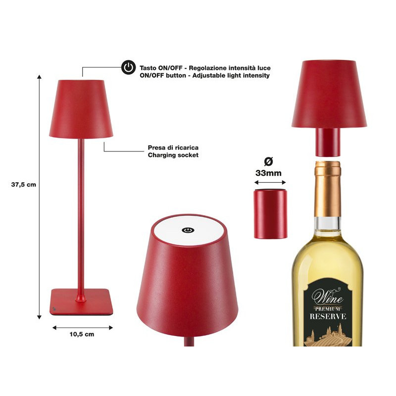 The included 33mm bottle adapter offers an elegant alternative to the table version by allowing you to place our lamp on your favourite bottle in the centre of your table.