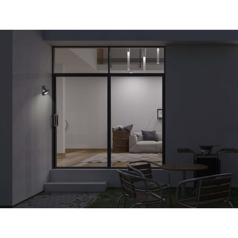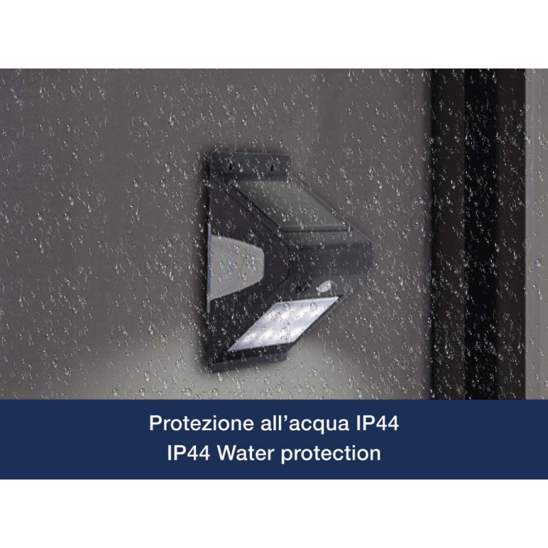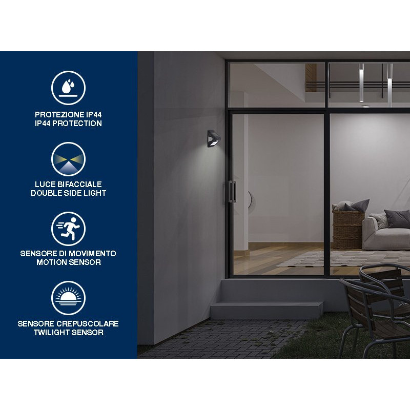 Solar-powered wall lamp with double-sided light.