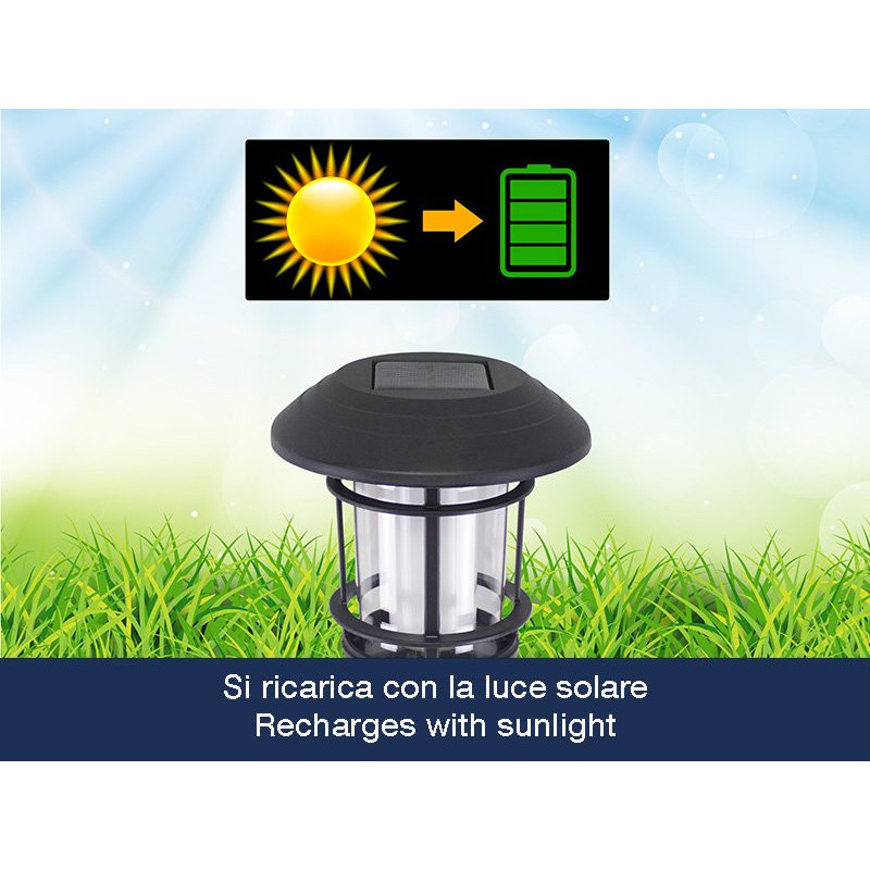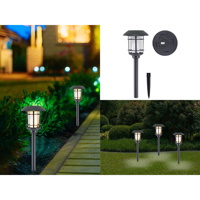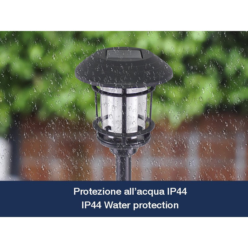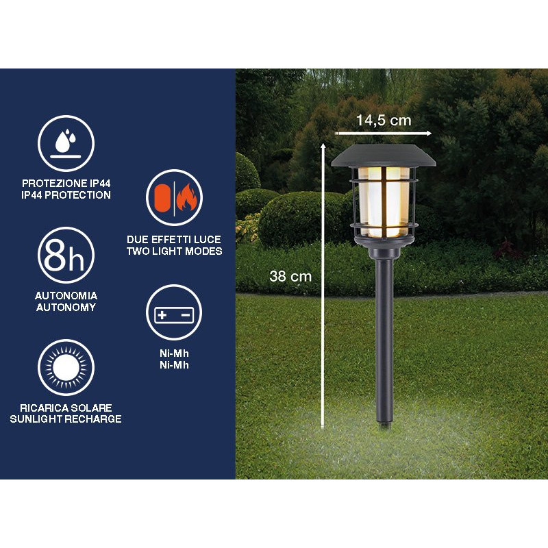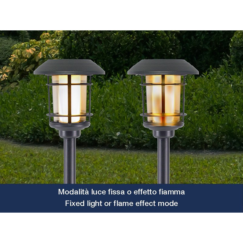 The stake allows the lamp to be fixed to the ground anywhere in the garden, next to flower beds or along pathways.