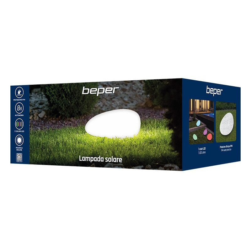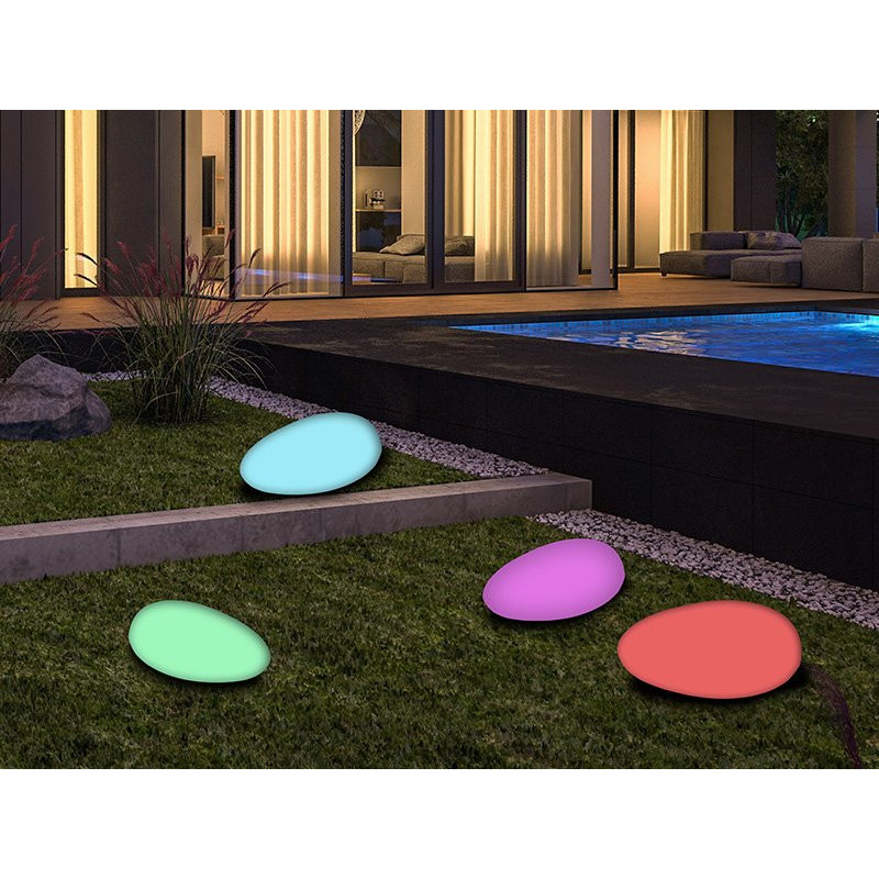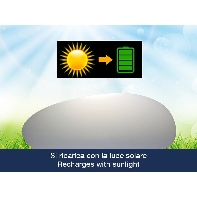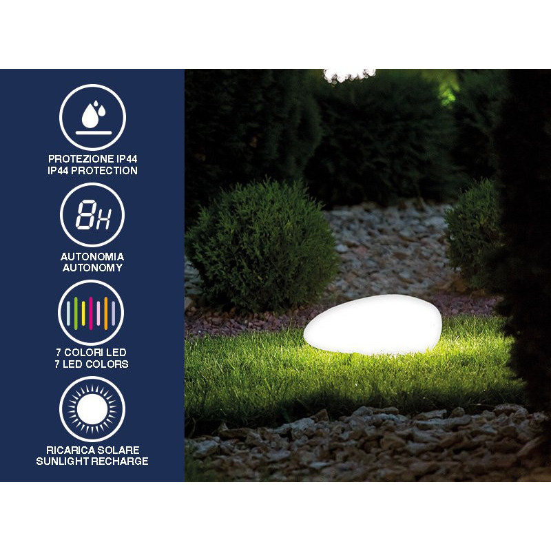 Solar garden lamp in the shape of a stone.