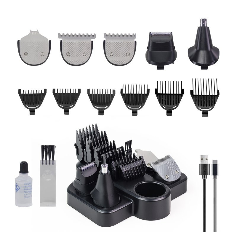 12 accessories for all shaving needs: hair clipper, beard trimmer, nose and ear trimmer, razor and precision trimmer for well-defined contours.