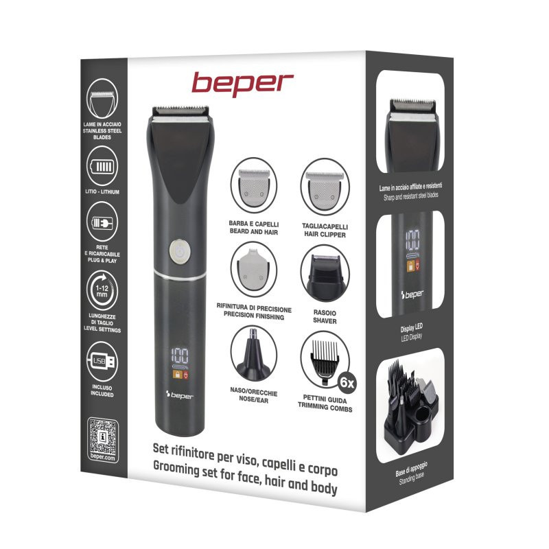 Maximum versatility and practicality in a single tool: the BEPER TrimX 12 is the grooming trimmer set designed for the complete care of face, hair and body.