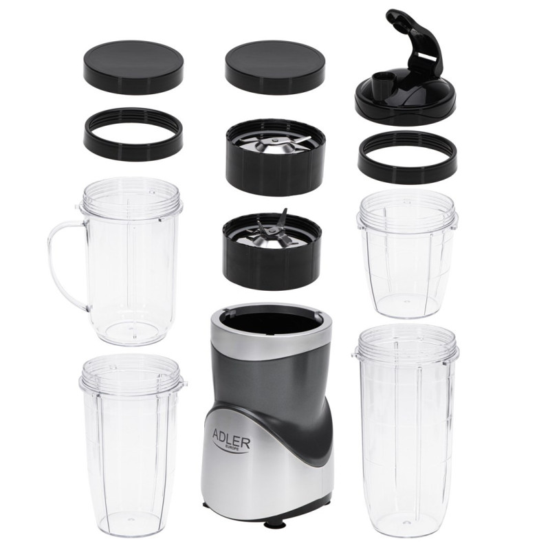 The ADLER AD 4084 stationary blender has a 0.7 L glass bowl and a maximum power of 1200 W. It has a removable bowl and is BPA-free, making it safe for home use.