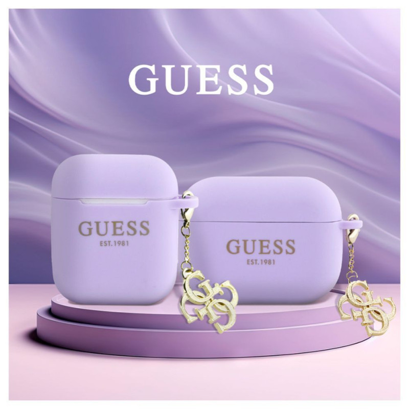 Guess Apple Airpods 1 / 2 Case Silicone Classic Logo Gold With 4G Charm Purple