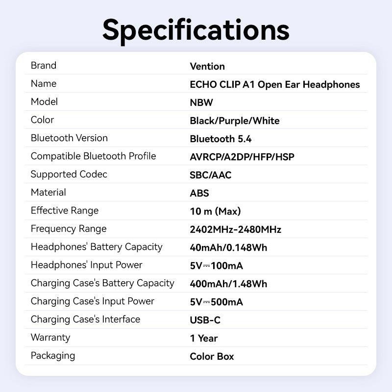 | Vendor Homepage | https://ventiontech.com/products/echo-clip-a1-open-ear-headphones?variant=46288209674406 |