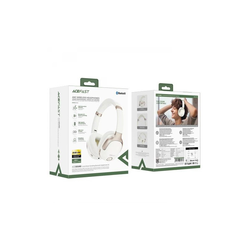 Thanks to Acefast H2 headphones, you will immerse yourself in the world of sounds, where every song sounds as it should, and external noises... cease to exist. These headphones offer an exceptional audio experience thanks to advanced noise reduction technology down to -40dB and professional HiFi transducers. Fast charging in 2 hours and a stable Bluetooth 5.3 connection means they're ready to go whenever you need them. Additionally, IPX4 water resistance protects them against splashes, and the HD microphone ensures clear voice calls.