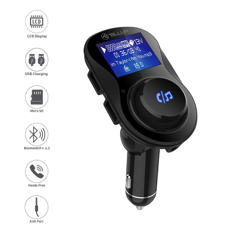 Be your personal DJ on the road with this versatile FM transmitter. You can play your favourite music through Bluetooth, USB, microSD or AUX for as long as your road takes you. Why? Because its dual USB output is ready to keep your battery full and the party going! Also, your conversations will sound clear and natural thanks to its in-call functions: noise suppression and echo cancellation.