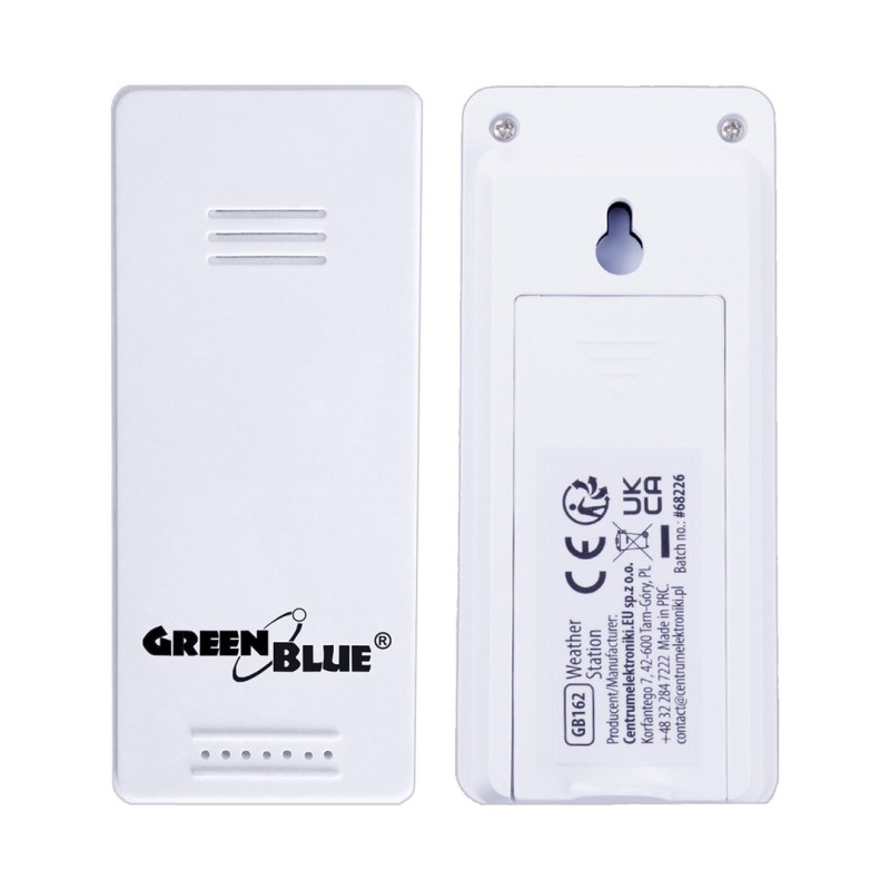 GreenBlue wireless weather station, temperature + humidity IN/OUT, clock + alarm + date, °C / °F selectable, range up to 60m, GB169