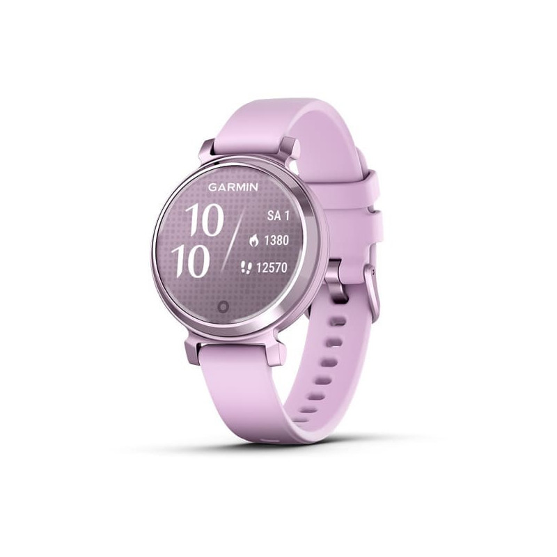 The Garmin Lily 2 watch features a 35.4mm digital touchscreen with a 240 x 201 pixel resolution, heart rate monitoring, activity tracking, and GPS functionality. It has a battery life of up to 5 days, is water resistant, and comes with a silicone strap that fits wrist sizes from 110 to 175mm.