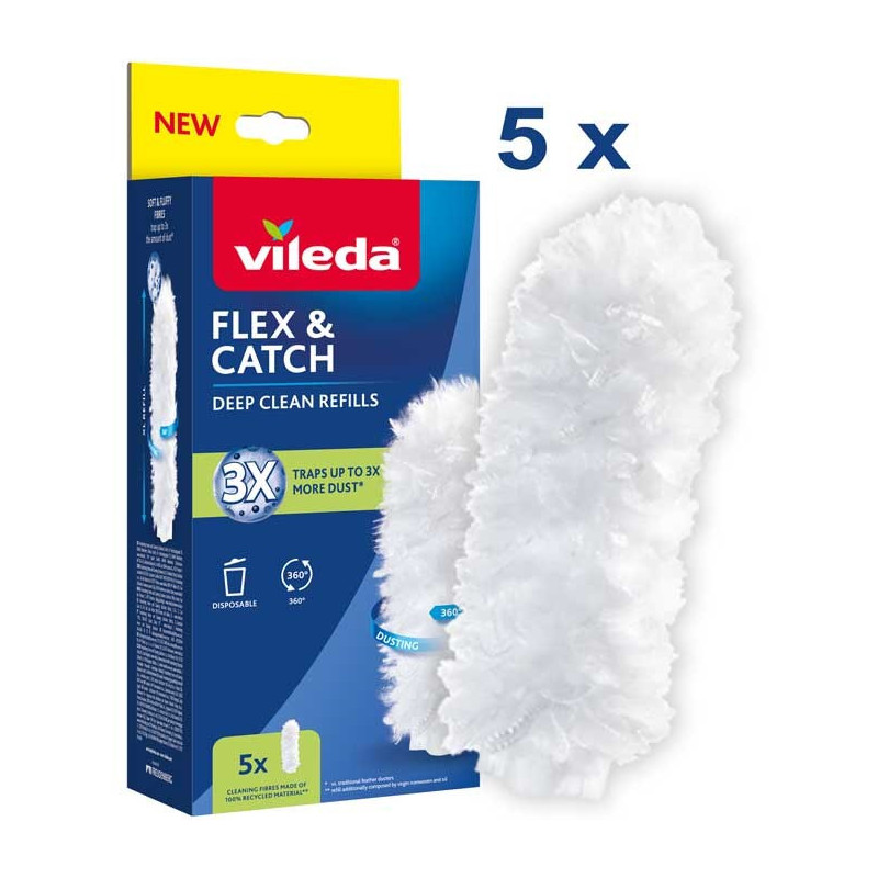 Vileda FlexCatch mop refills are sold in packs of five and are compatible with Vileda products. They are easy to use and clean, but it is important to store them in a dry place and out of reach of children.