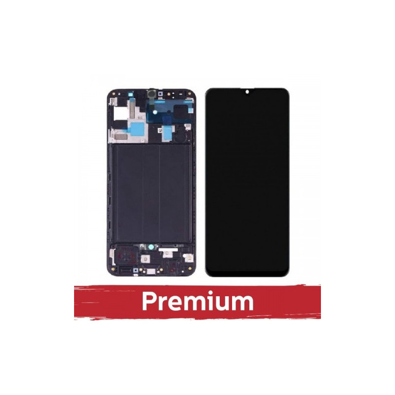 Screen for Samsung A505 A50 black with frame / OEM / (large display area)