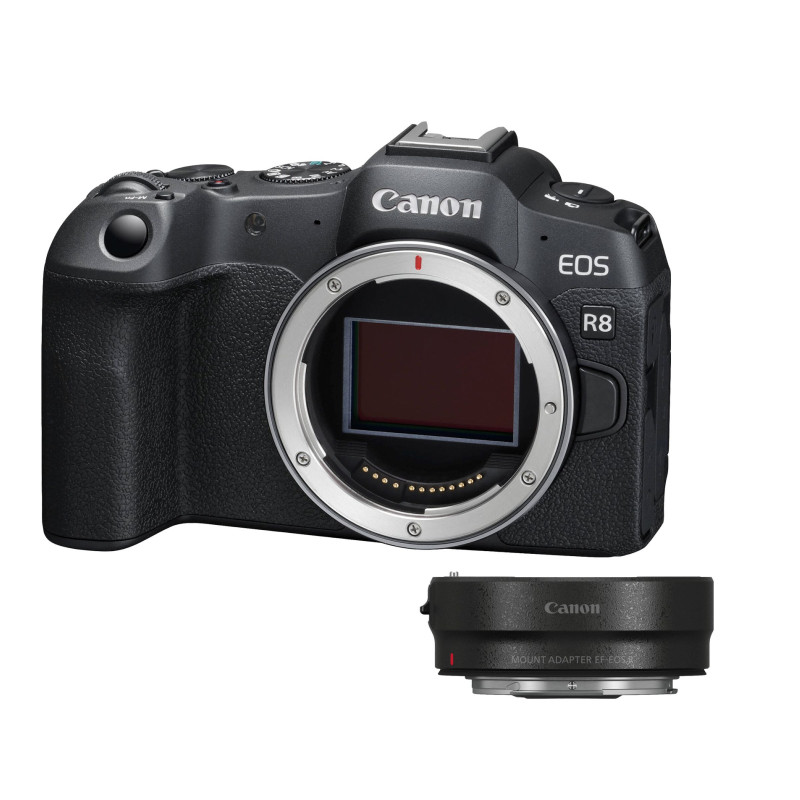 Canon EOS R8 + RF 24-50mm IS STM + Mount Adapter EF-EOS R Switch to full-frame photos and videos and realize your creative ambitions.Unleash your creativity with full-frame gear. Enjoy better bokeh, wider viewing angles, and impressive image quality even in low light.The full-frame advantage...