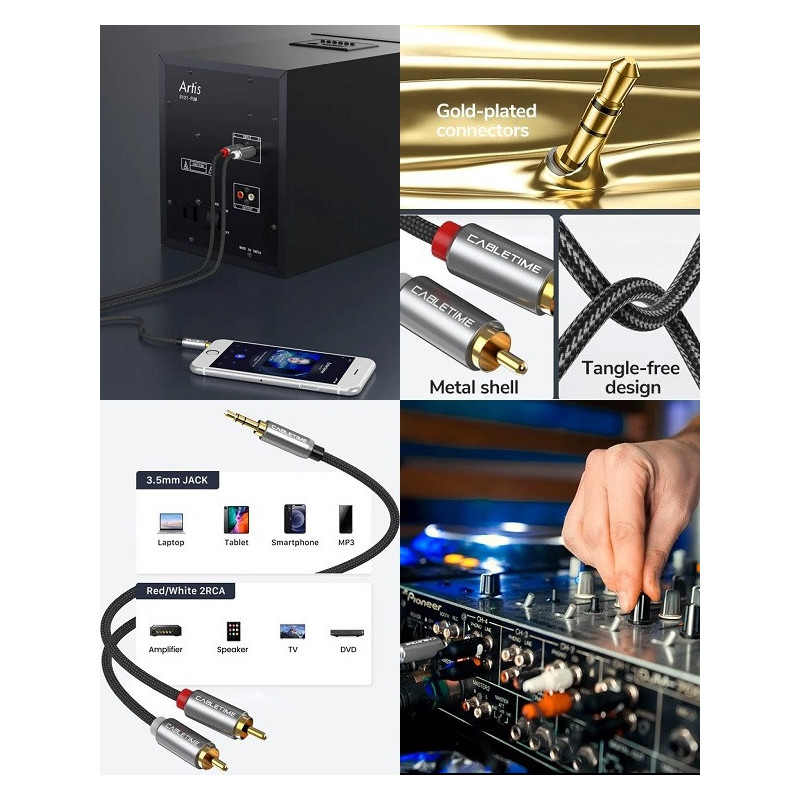 Designed for transmitting audio signals from devices such as a laptop, tablet, smartphone, MP3 player, to an amplifier, speaker, DVD, TV, etc.