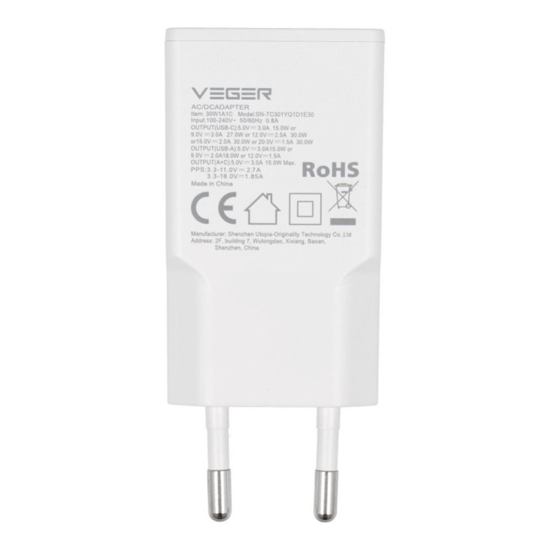 Adapter Veger Phone charger VEGER USB A + USB C QC PD 30W 30W1A1C white