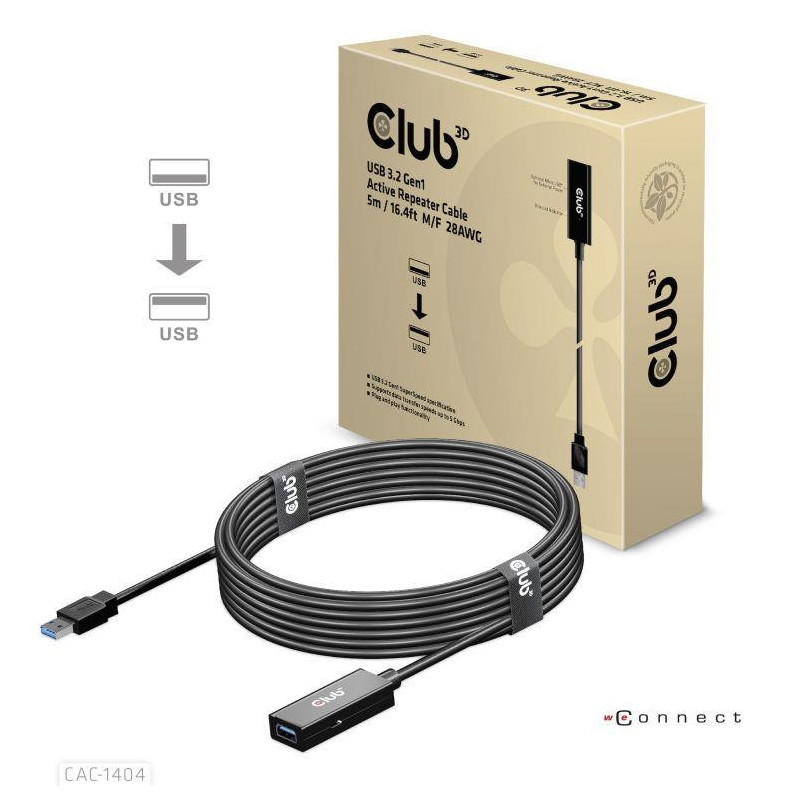 With this Club3D USB 3.2 Gen1 Active Repeater Cable CAC-1404, you can go far beyond the standard USB Cable length limitation of 3 meters /9.84 feet, without loss of Data Transfer Speed. The USB 3.2 Gen1 Active Repeater Cables are fully Plug & Play and do not require any driver installation. Just connect your external USB device like External HDD/NAS/Digital Camera or External USB Graphics to your system with the CAC-1404 and have flexibility of the increased 5 meters /16.4 feet of extra cable length. Also for a VR experience at the sofa away from the notebook or PC this cable provides you with the freedom of movement. The CAC-1404 supports data transfer rates up to 5Gbps over the full length of the cable.
