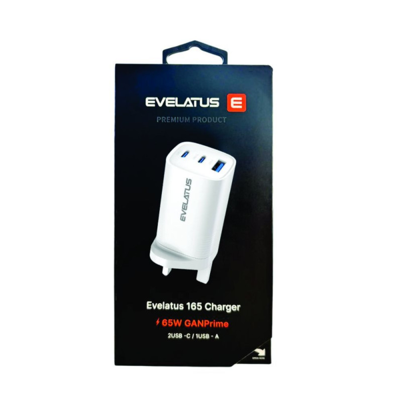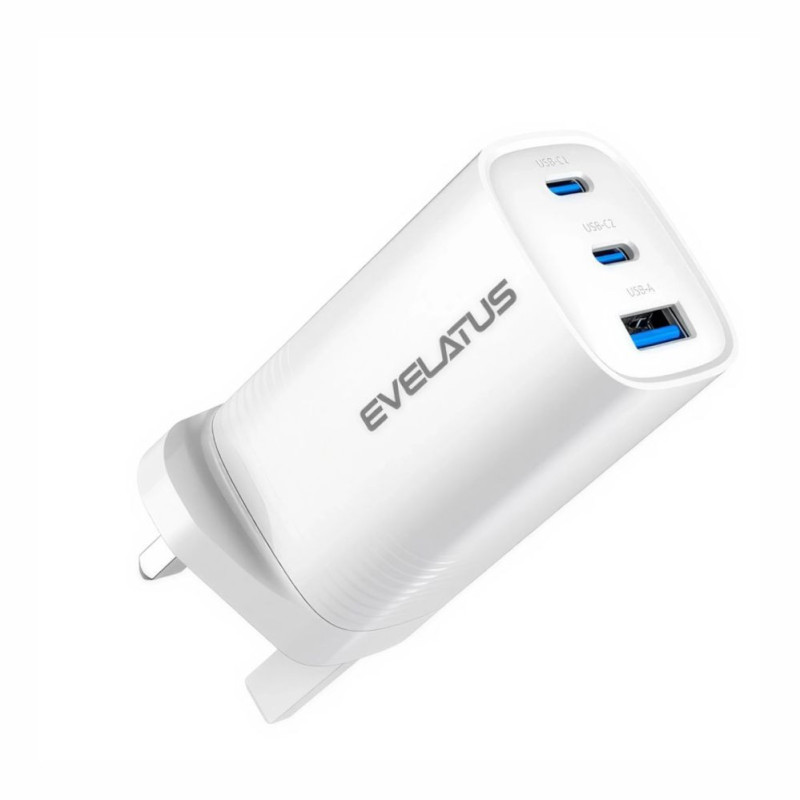 Adapter Evelatus 65W Max Fast Charger UK USB-C1/USB-C1/USB-A White