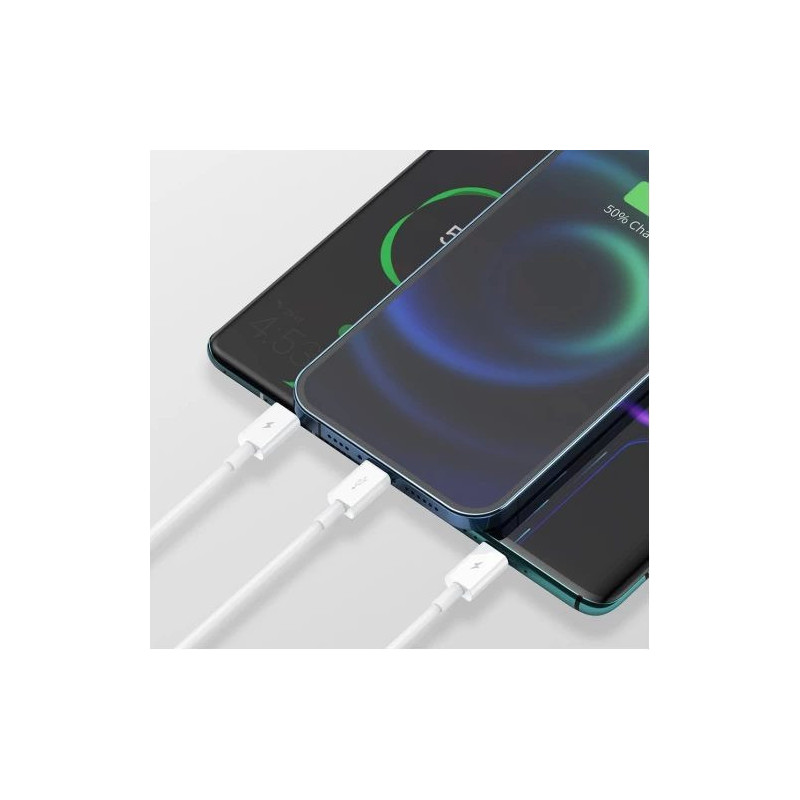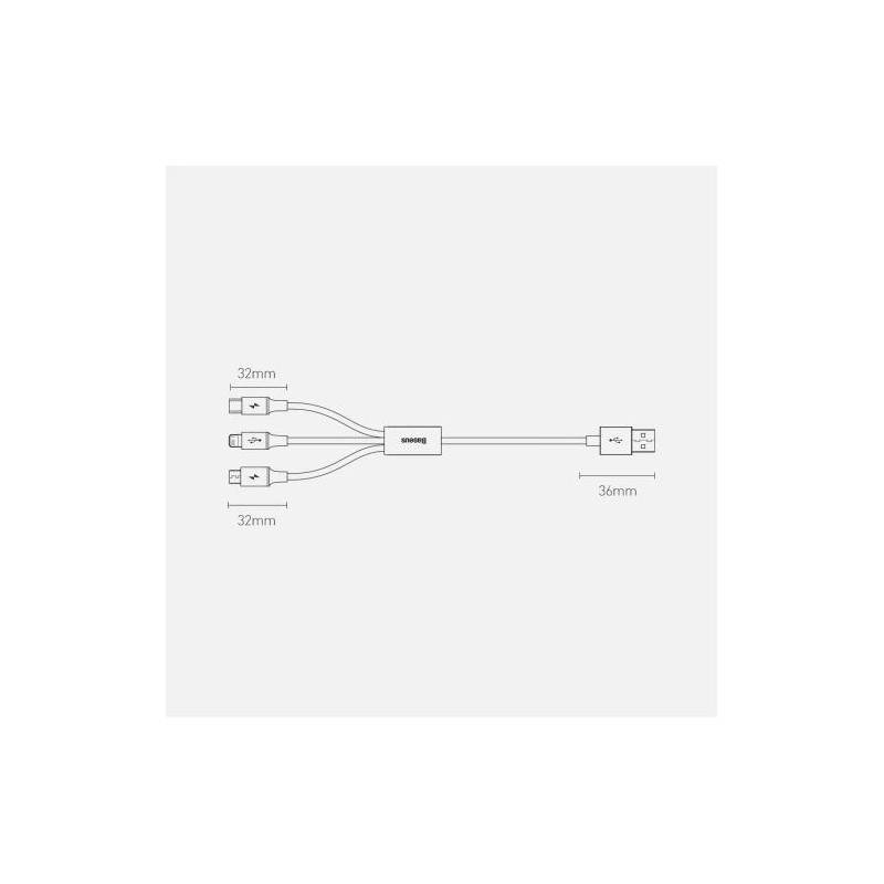USB cable with 3 plugs: USB Type C, micro USB and Lightning. A single cable that allows you to charge any device equipped with the aforementioned connectors and transfer data, eg to and from a computer to a phone. Ideal for people with several devices from different manufacturers.