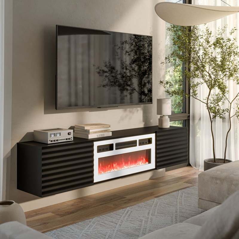 Cama RTV cabinet TULA 183x35x37 black matt + white fireplace