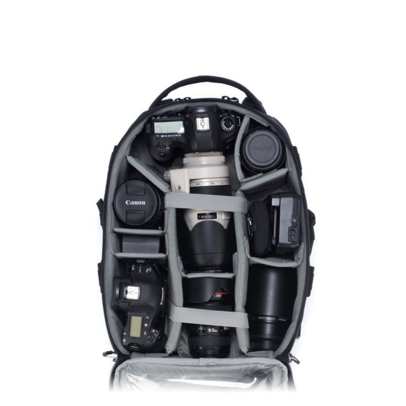 Large main opening accommodates professional-sized DSLRs, lenses, and accessories Convenient airflow webbing system including removable Arc and MOLLE compatible webbing system Lightweight design maximizes gear protection and reduces weight Fits in the overhead compartment of most commercial aircraft worldwide (check with your airline for detailed shipping restrictions) Secure laptop compartment holds up to 15-inch laptops Fully stitched air-tight rain fly Side arch attachment points hold MAS and SAS components and a variety of other accessories, including MOLLE Front butterfly accessory pockets hold small personal items Quick-release tripod attachment system Protective foam dividers are fully customizable for your gear External dimensions - 12 x 17 x 10 inches (31 x 44 x 25 cm) Internal dimensions - 11 x 16 x 6.5 inches (28 x 41 x 16 cm) Weight - 4.4 lb (2.0 kg) 500D CORDURA nylon fabric with 2x PU coating 840D polyester Dobby fabric with 2x PU coating 210D Oxford nylon lining YKK® zippers Duraflex® and Woojin® Acetal buckles DSLR cameras with battery grips Mirrorless cameras Multiple lenses Flash units Lenses up to 14 inches (35.56 cm) long attached to the camera body Tablets and laptops up to 15' Phone and other accessories