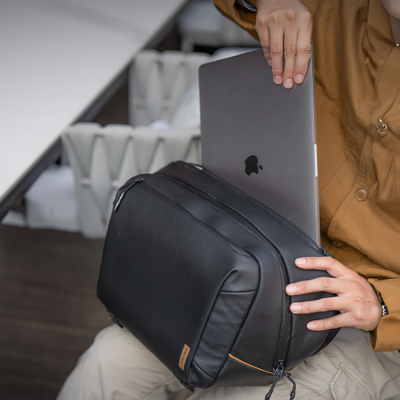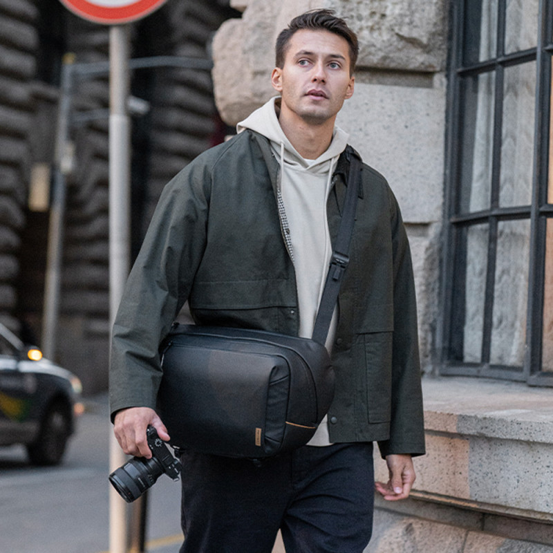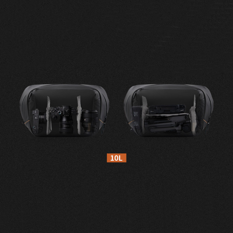 The PGYTECH OneGo Solo V2 10L is a versatile bag designed for everyday use and photography. It features a large opening, customizable compartments, and multiple pockets for organized storage. The bag features a dedicated 14" MacBook compartment, a hidden side pocket for a water bottle, and a removable shoulder strap for convenience.