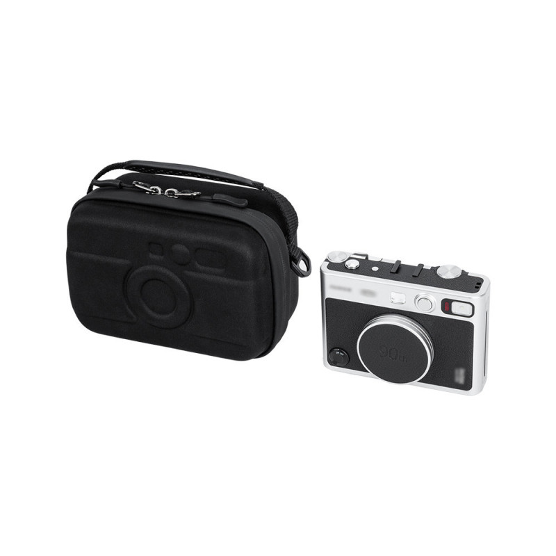 The HSCC IME BLACK camera case is designed to protect instant and compact cameras with a sturdy elastic Velcro strap and a mesh pocket for accessories. Made of durable EVA material, it has an adjustable shoulder strap for comfortable carrying.