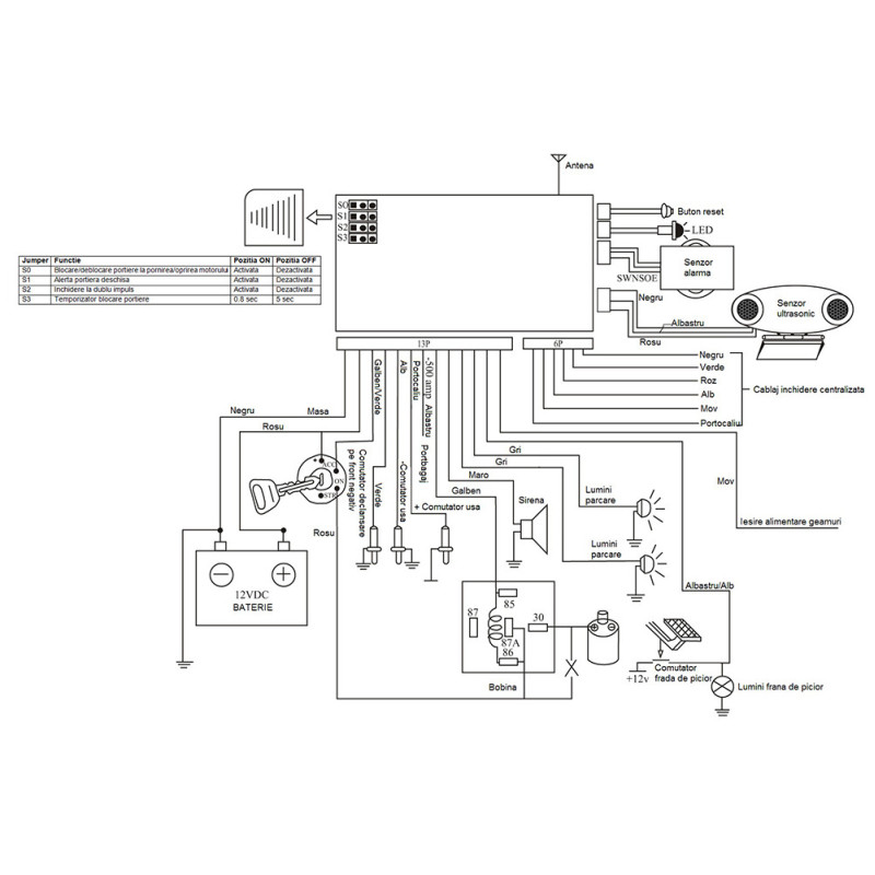 Car alarm PNI OV288 with 2 remote controls and central locking mode