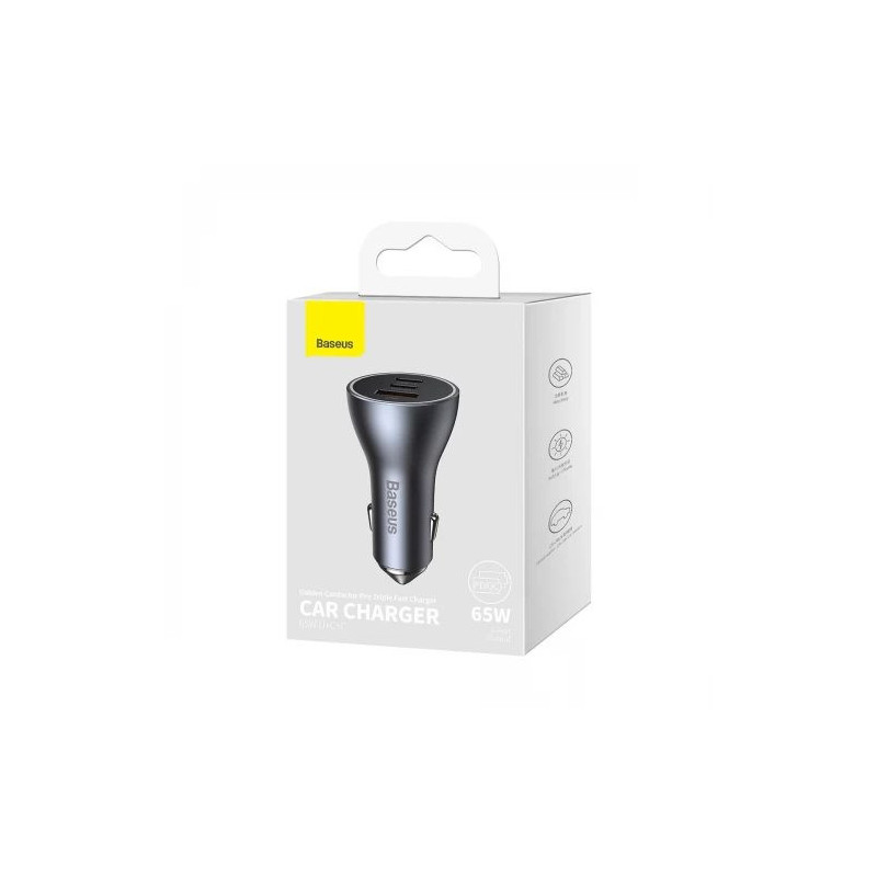 Baseus Golden Contactor Pro car charger USB-A + 2x USB-C 65W dark gray