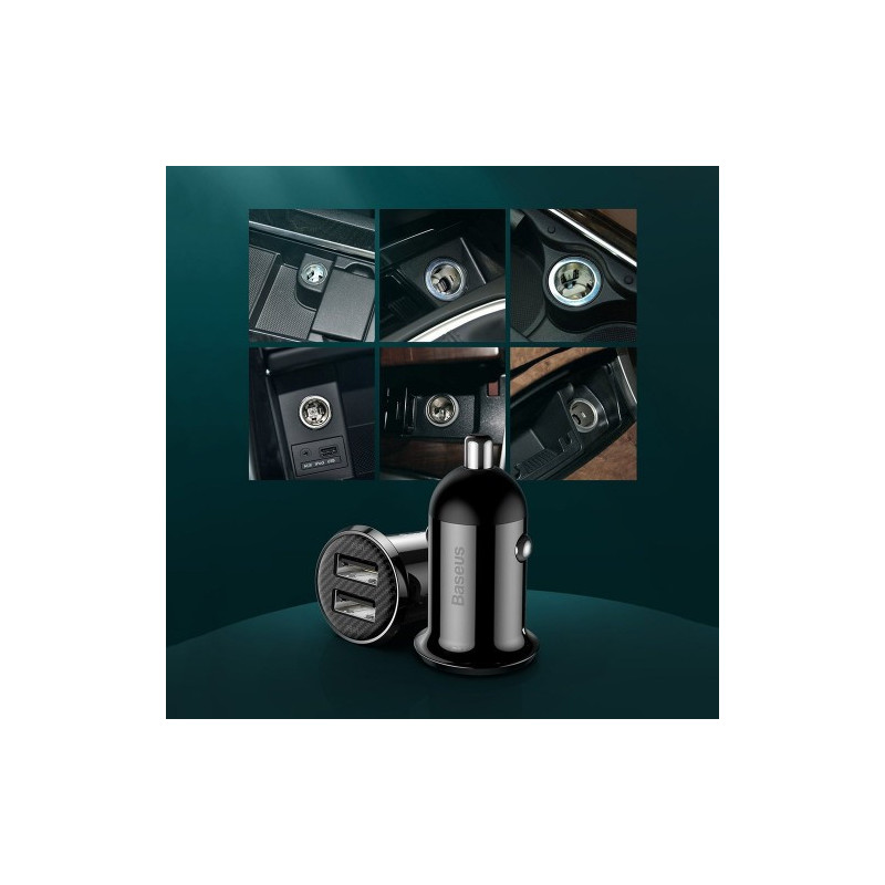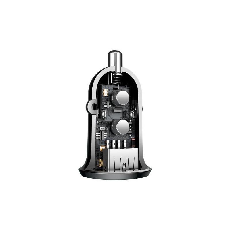 A small car charger can be very powerful. This is proved by the Baseus product equipped with two USB charging ports. The total power with which it can work and charge two devices is even 4.8A. Quickly and safely thanks to the use of up to 6 intelligent security features.