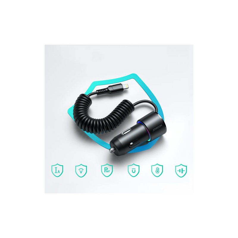 Joyroom 3-in-1 fast car charger with Lightning cable 1.5m 17W black (JR-CL25)