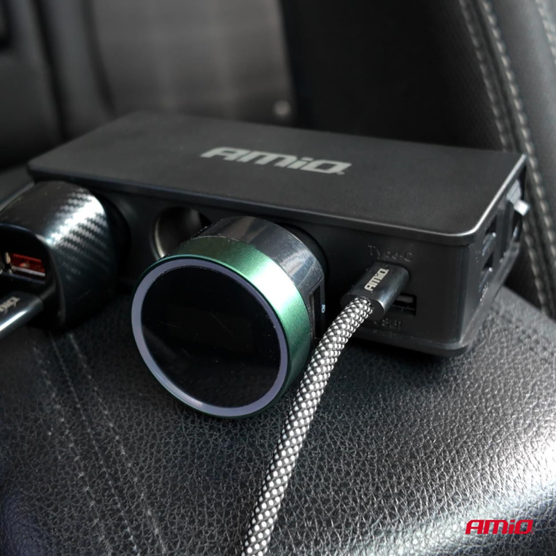 Cigarette Lighter Socket Splitter with Charger 3xUSB-A USB-C QC 3.0 PD 3.0. 148W AMIO-04836