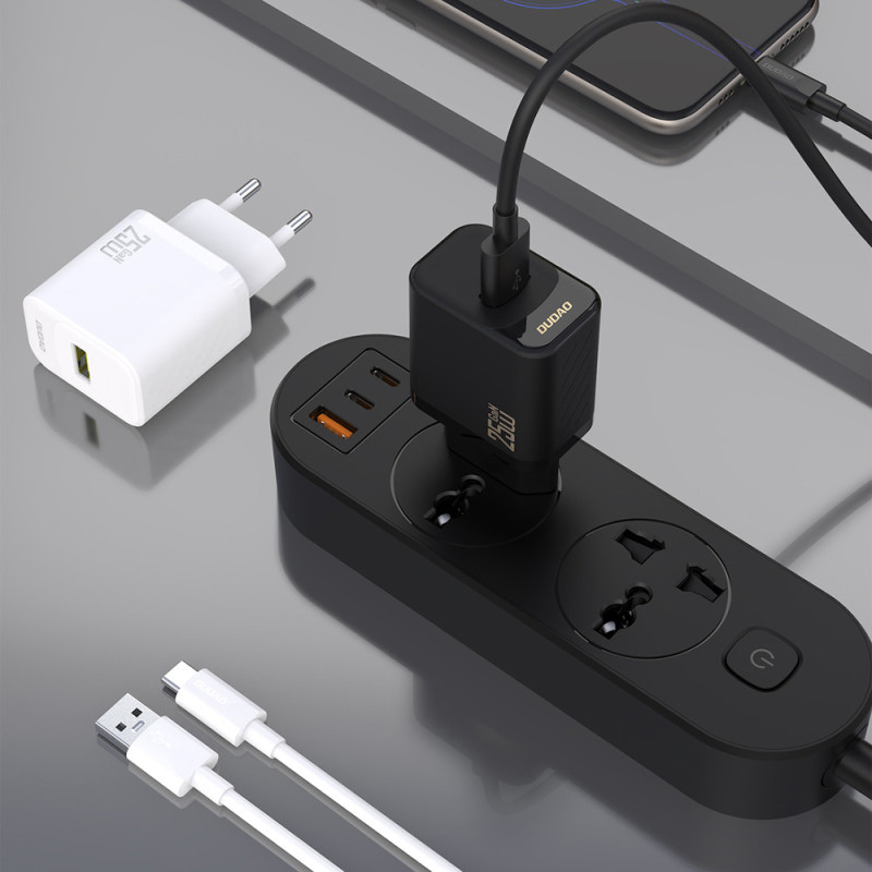 The Dudao A27STEU wall charger is a compact and modern solution for everyday charging of mobile devices. 25W GaN technology enables fast and stable charging while maintaining a compact footprint. The non-slip texture improves grip and comfort, while the included 1m USB-A to USB-C cable enhances convenience right out of the box. The 9-layer security system supports safe charging. This is a practical set for home, office, and travel.