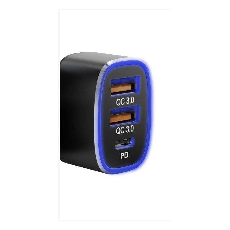 Fast charges three devices simultaneously via PD USB-C and QC3.0 ports