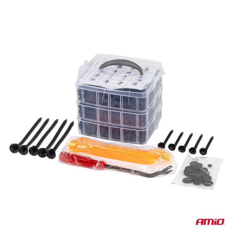 Car clips, pins, upholstery remover, 650 pcs. AMIO-04433