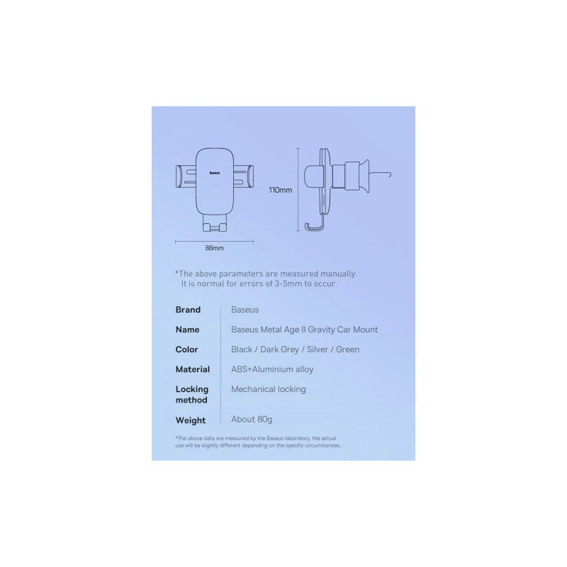 The Baseus holder is very easy to install. Thanks to a specially designed clamp, it will fit most ventilation grills used in cars. This method of installation has a great advantage. The phone is located in a place where it does not distract the driver while driving and does not limit visibility. In practice, your comfort and driving safety will increase significantly.
