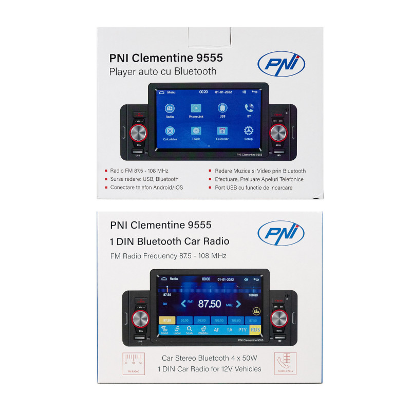 Car MP5 player PNI Clementine 9555 1DIN display 5 inch 4 x 50W, Bluetooth, FM radio, Carplay, RDS function